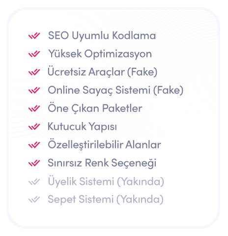 Roxi Teması, SEO uyumlu, yüksek performanslı ve modern tasarımıyla sizi rakiplerinizin önüne geçirir. Özelleştirilebilir yapısı sayesinde farklılaşmanızı sağlar ve müşteri gözünde markanıza değer katar.